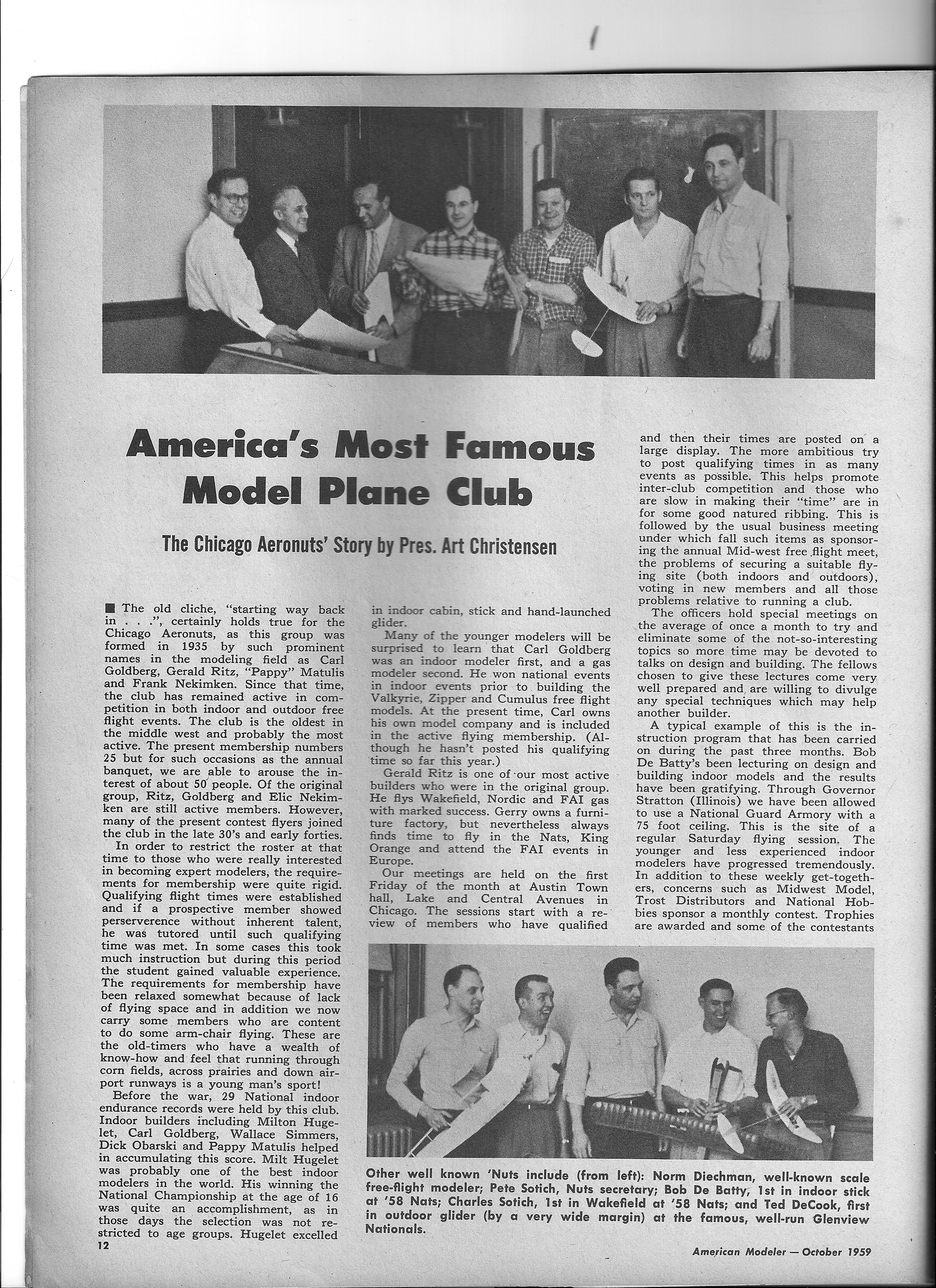 Chicago Aeronuts article in "American Modeler" (October, 1959)
